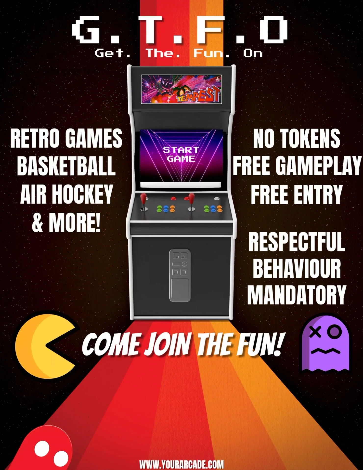 G . T . F . O ( Get. The. Fun. On. ) is a gaming/arcade room - open to all kids/youth.